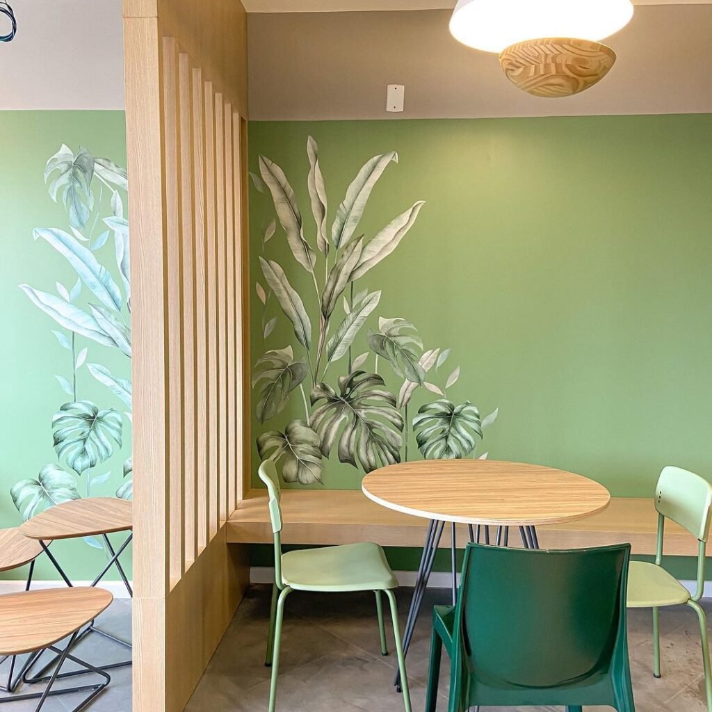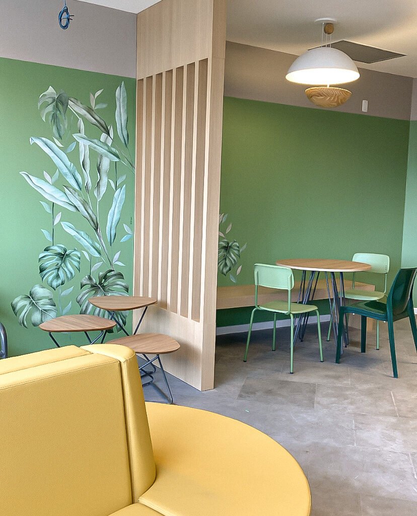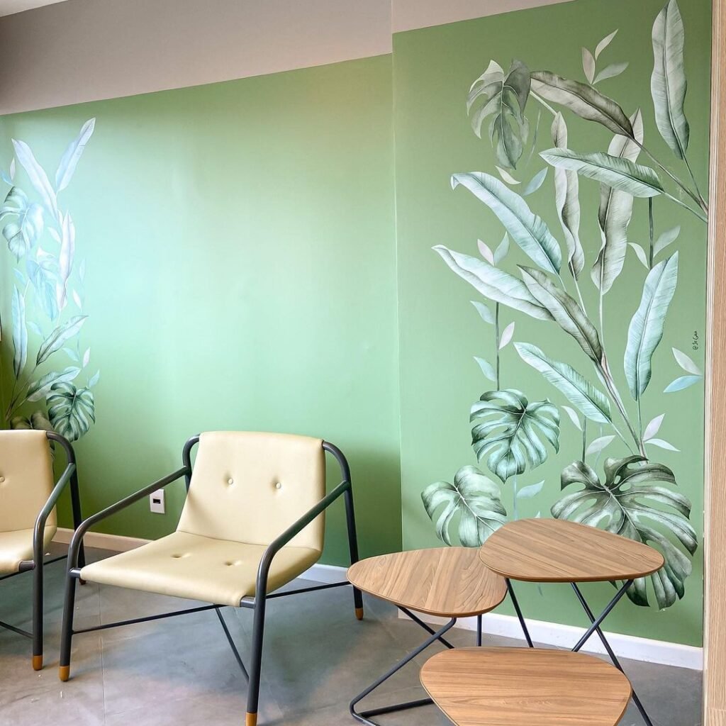 Fui convidada para dar um toque final na sala de descanso de estudantes e médicos do novo prédio do HCPA, e o tema tinha tudo a ver com o que engloba a maioria das minhas artes: muitas plantas!